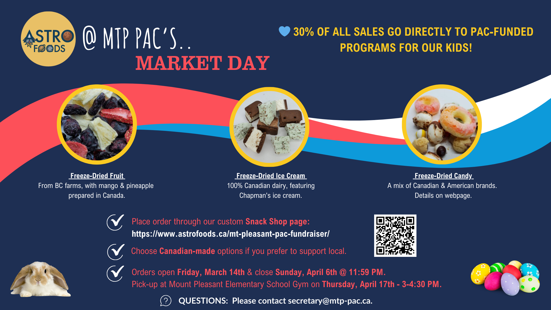 Mt. Pleasant Elementary PAC is excited to partner with Astro Foods for a Freeze-Dried Snack Fundraiser! Every purchase helps support PAC-funded programs that enrich our kids’ school experience.
