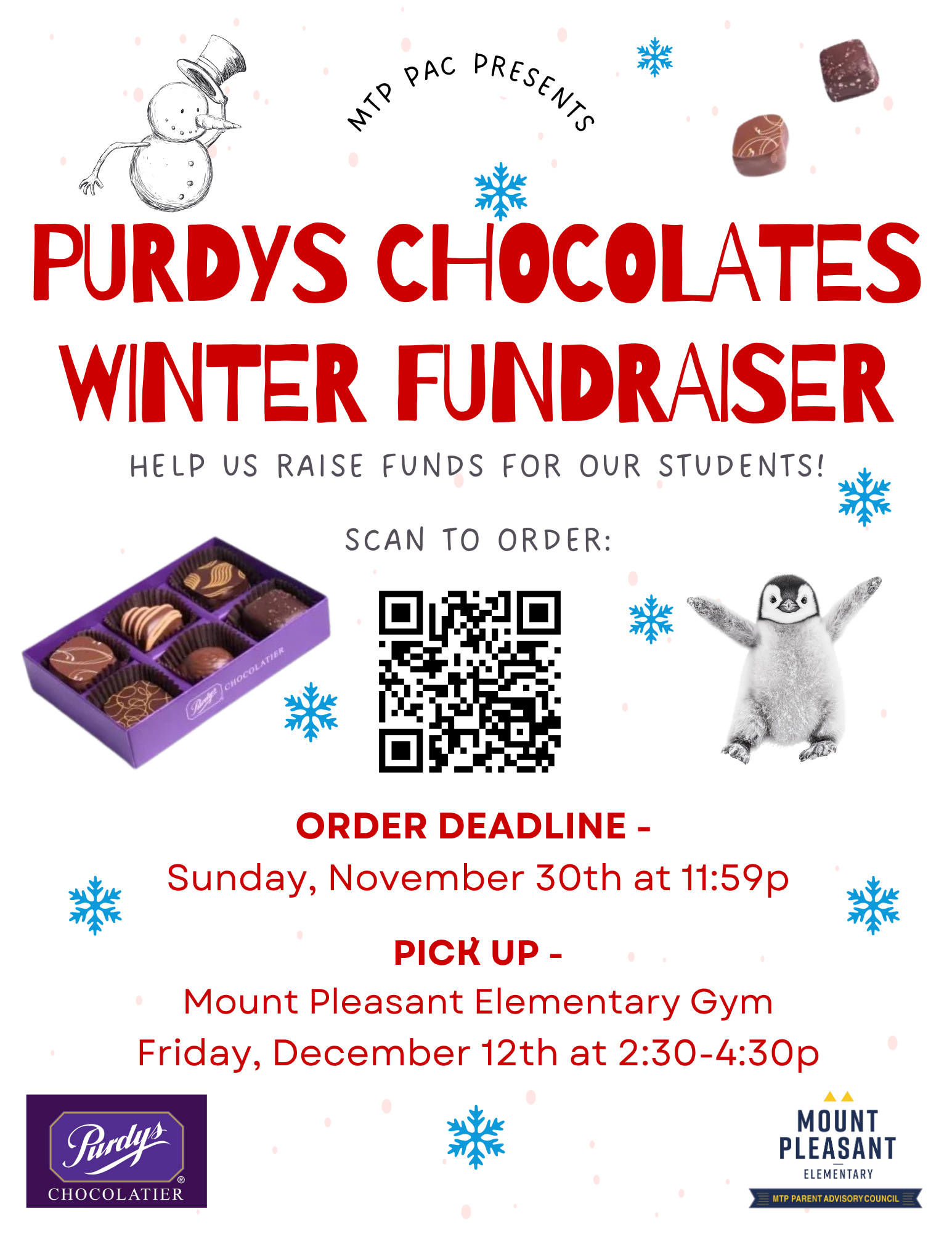 Order Purdys Chocolates through the Mount Pleasant Elementary PAC fundraiser!